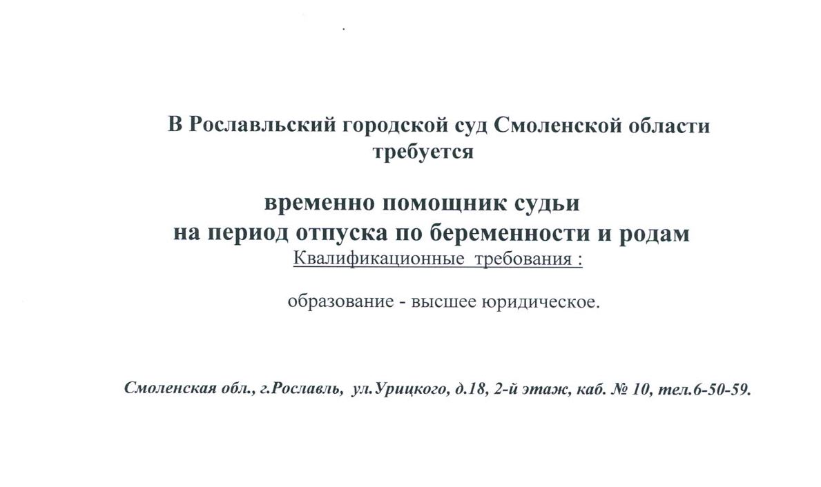 В Рославльский городской суд требуется помощник судьиверсия для печати